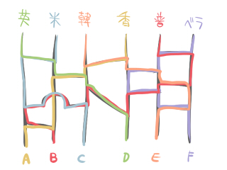 まずは好きなキャラを6人挙げて、あみだくじなどでランダムに下のアルファベットに当てはめて下さい。