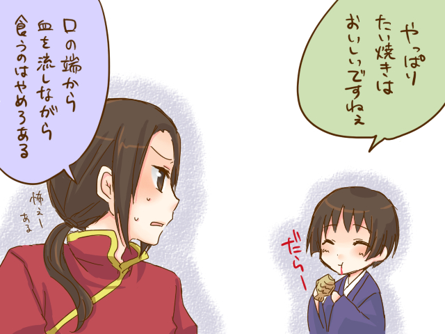 口の端切れてるのに気が付かないまま鯛焼き頬張ってた私。鈍すぎる(笑)
